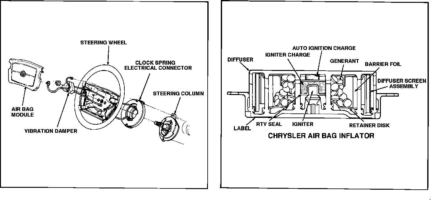 The airbag module, which bolts to the steering wheel, contains the airbag inflator. When the airbag is deployed, bag inflation is extremely rapid. It is very important that the following steps are taken to insure personal safety: