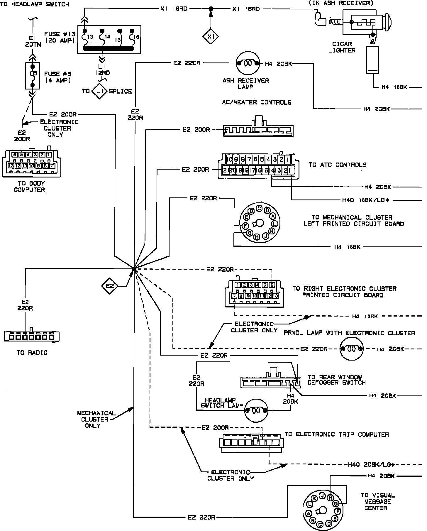 Headlamp Switch Controlled Interior Lighting & Instrument Panel To Ground System Wiring Circuit: