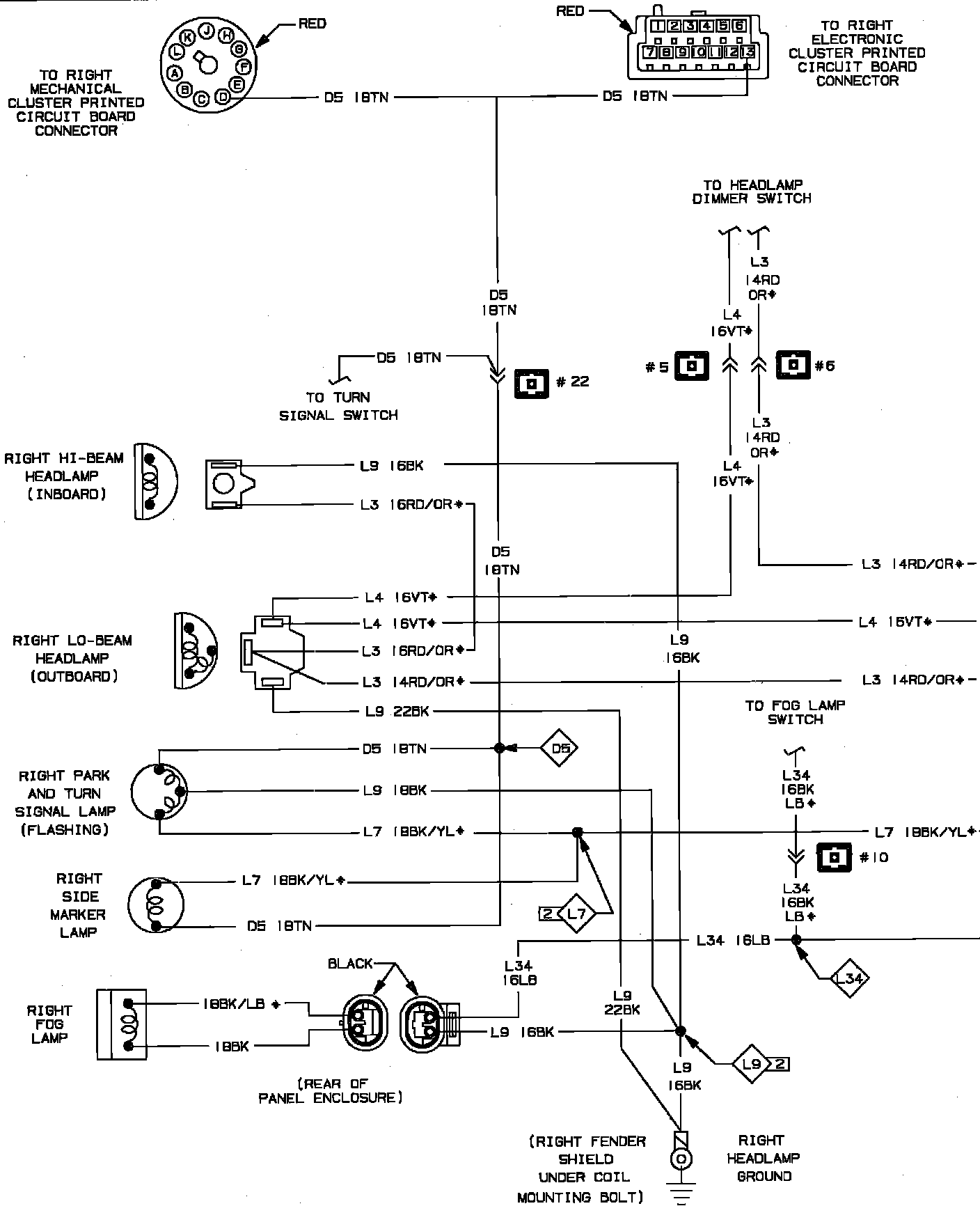 Front End Lighting Wiring Circuit (Part 2 of 2):