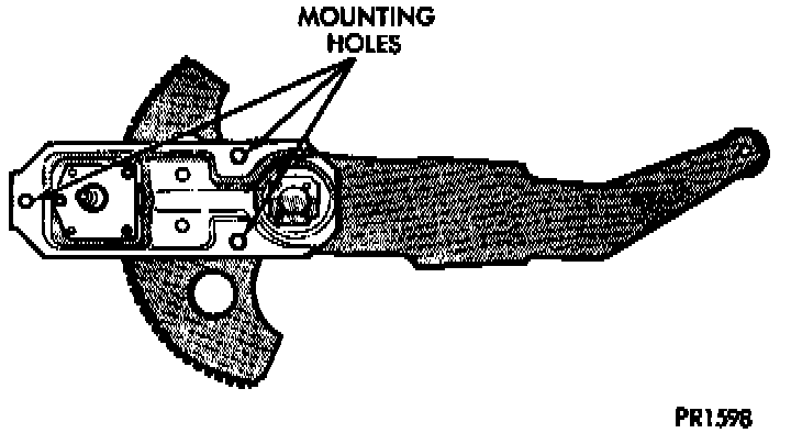 2. Secure regulator to door panel with 1/4-20 nuts and short length screws making sure screws do not interfere with regulator operation. Torque to 10-18 Nm (90-115 in. lb.).