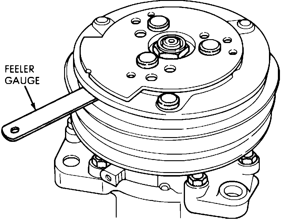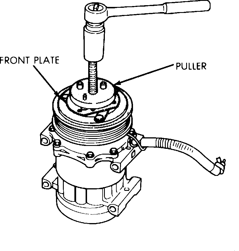 7. Check air between front plate and rotor pulley. Air gap should be 0.016-0.031 inch. If not, change shims with shims of a different thickness as required.