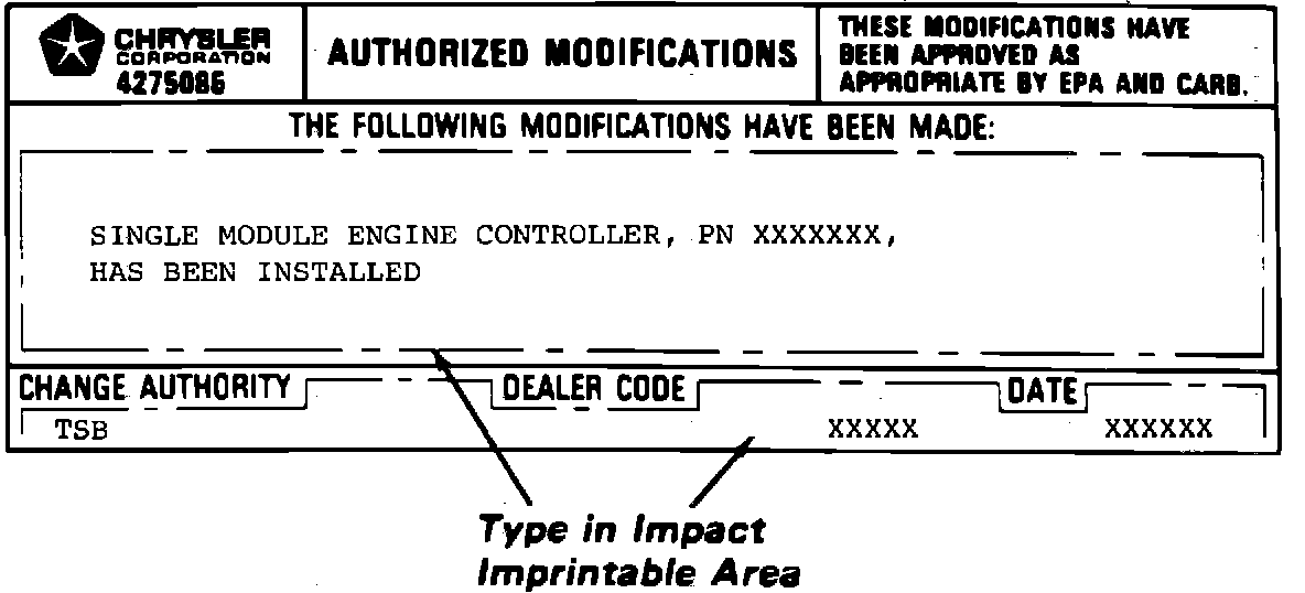 Authorized Modification Label PN 4275086