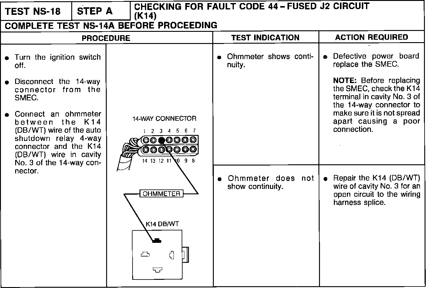 NS-18A Fault Code 44 Fused J2 Circuit (K14)
