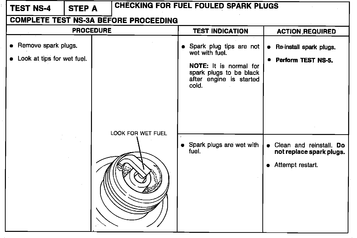 NS 4-Step A: Fuel Fouled Spark Plugs: