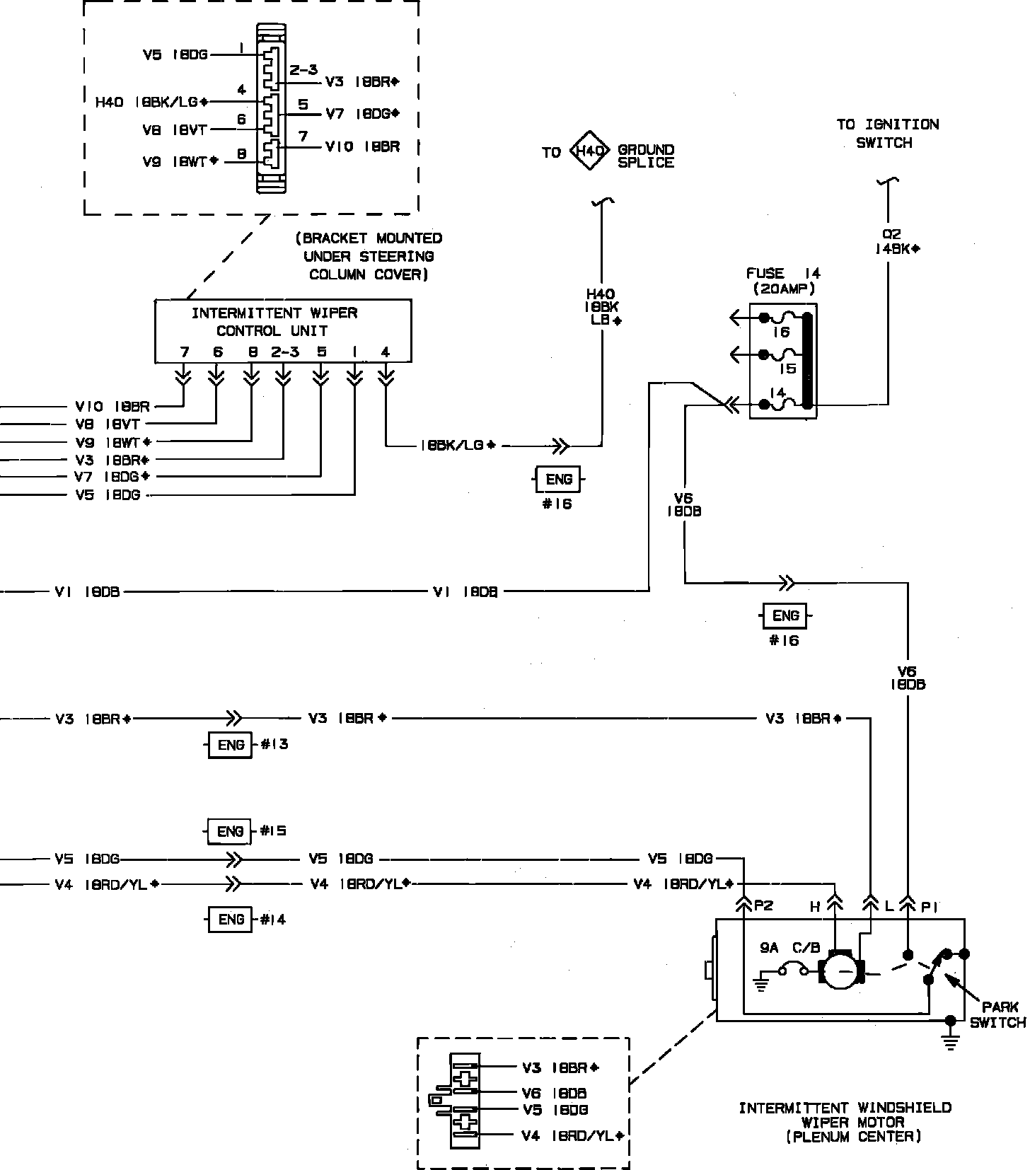 Windshield Wiper System Wiring Circuit: