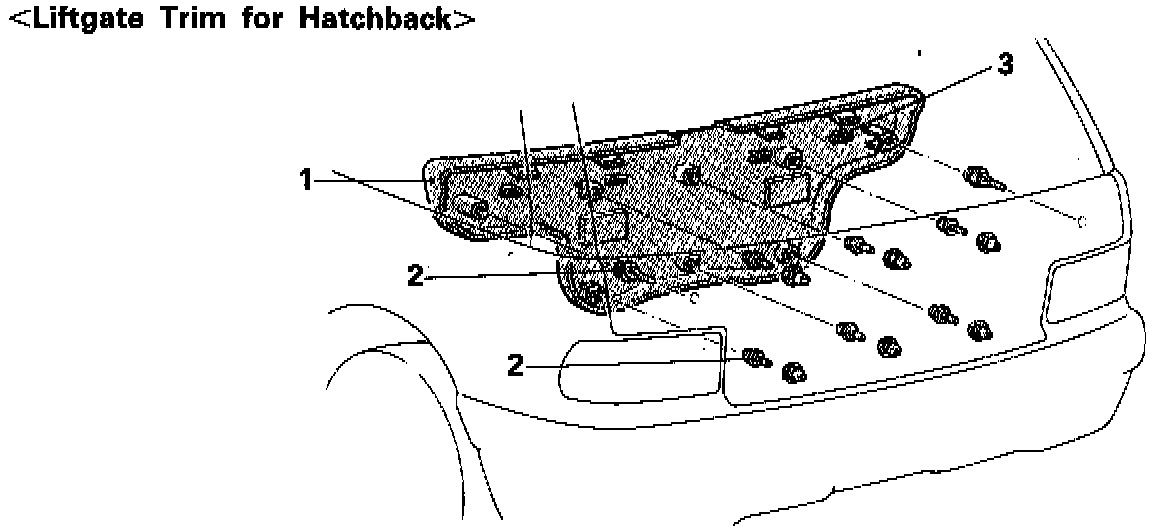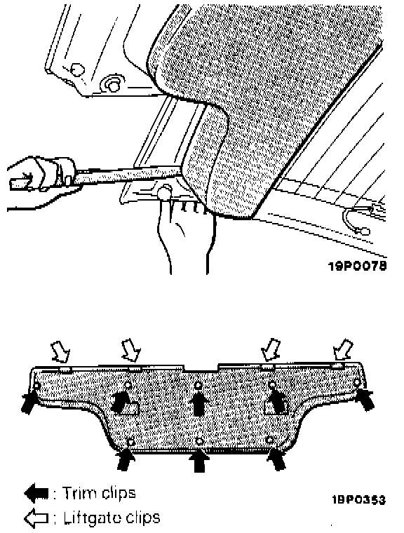 1. Using a plastic trim tool, unhook trim clips of the liftgate trim.