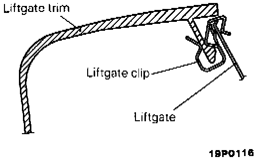 Fit the tab on the upper part of the liftgate trim into the liftgate clips and secure the liftgate trim.