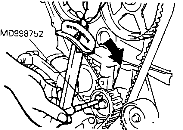 9. Adjust timing belt tension as follows: