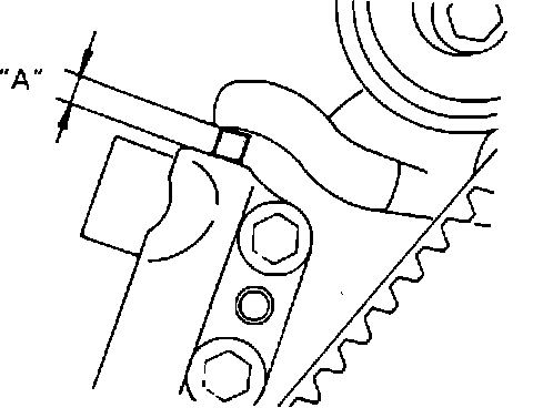h. If clearance (A) cannot be measured with engine in vehicle, screw in set screw tool No. MD998738 or equivalent, until end of tool makes contact with tensioner arm.
