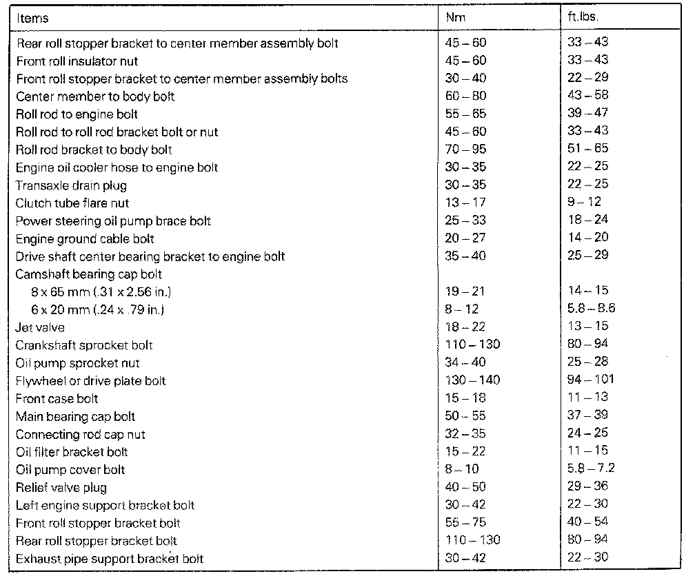Tightening Specifications