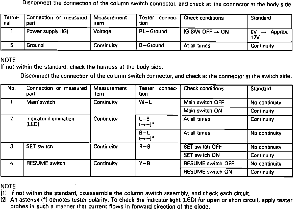 Cruise Control Switch: Testing and Inspection