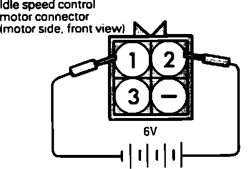 3. Check the operation of the ISC Motor by connecting a 6 volt or lower power source between terminals # 1 and # 2.