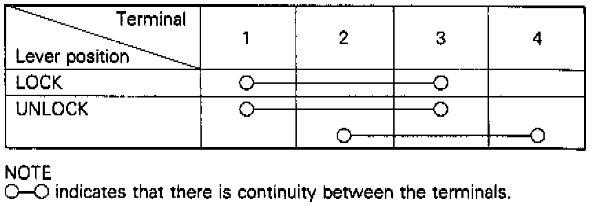 2. Verify that the voltage on terminal (3) is reduced to 0V when terminal (4) or (5) is connected to the ground and returns to 12 V in about 0.5 second.