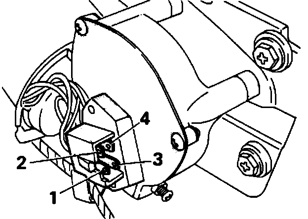 3. Connect battery positive lead to terminal 4 and negative lead to terminal 2, and ensure motor runs at high speed.