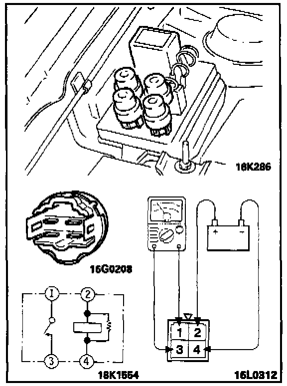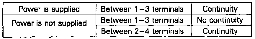 Connect battery power source to terminal 2. Check circuit between terminals with terminal 4 grounded.
