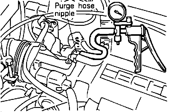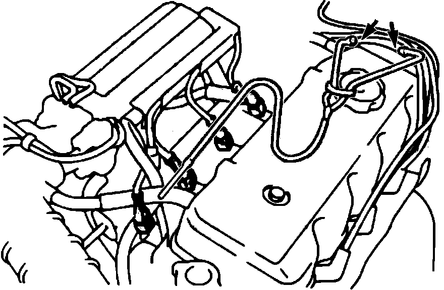 The fuel pump check terminal (shown hooked-up) is located in the engine compartment next to the left side strut tower.