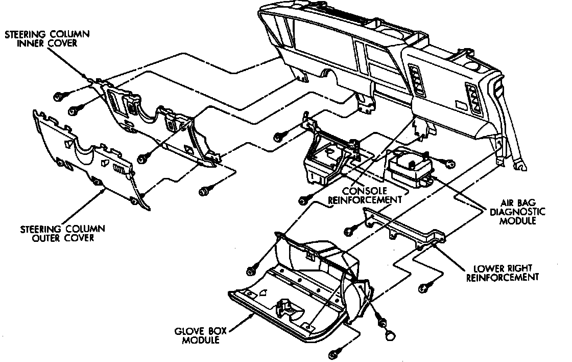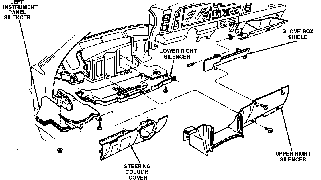 4. On LeBaron coupe models less passive restraints, remove upper right instrument panel silencer.