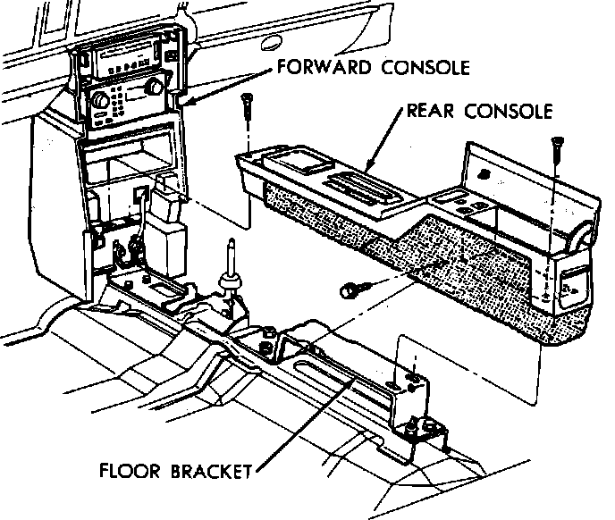 11. Remove forward and rear consoles as follows: