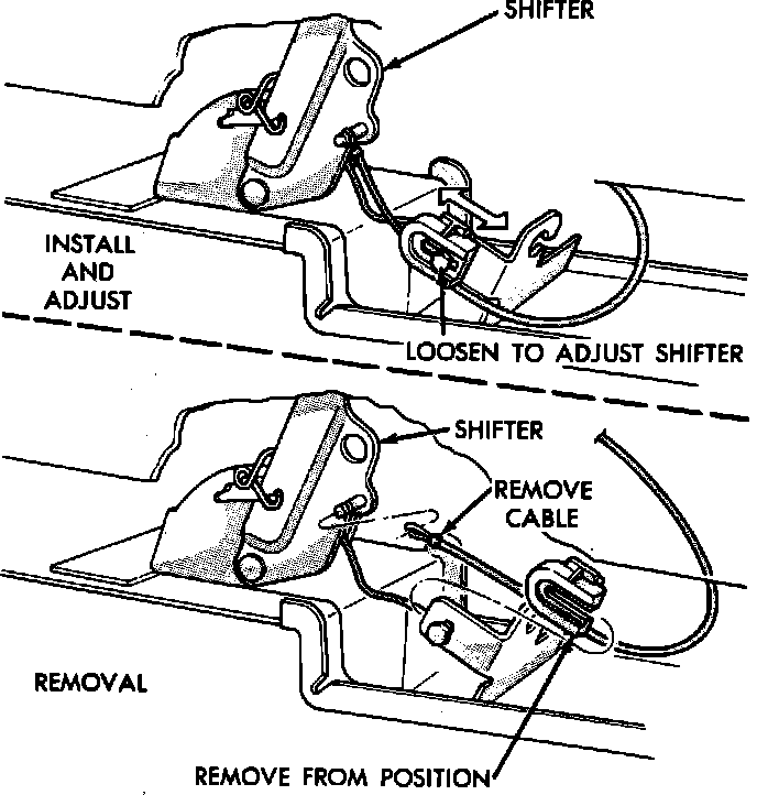 18. Reverse procedure to install, adjusting shift indicator cable in P position.