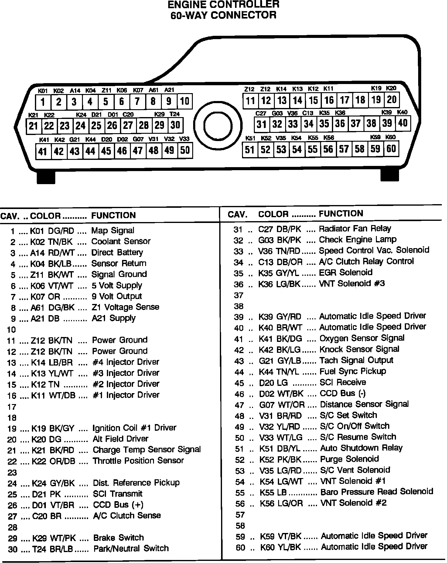 60-Way Connector Pinout Identification: