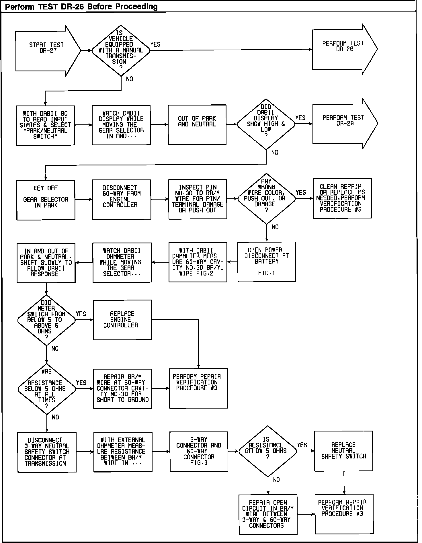Test DR-27 - Checking Park/Neutral Switch Input: