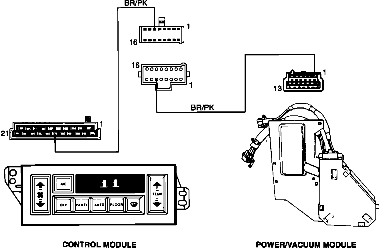 4. Disconnect 13-way connector from PVM, then check for continuity between ATC control pin 16 and PVM pin 1.