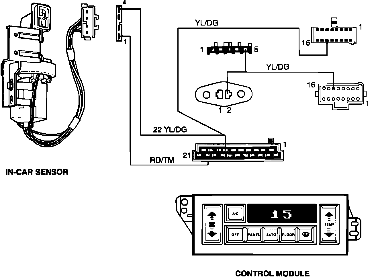 1. Remove ATC control, then disconnect electrical connector and measure resistance between pins 7 and 20. Resistance should measure 5000-41000 ohms with temperature between 30 and 90°F.