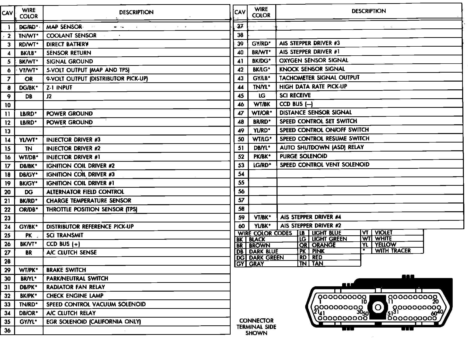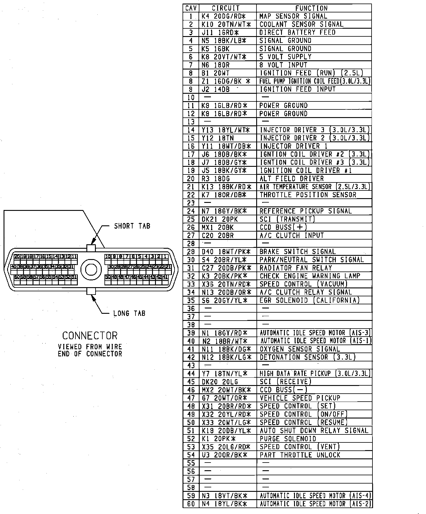 60-Way Connector Pinout Identification: