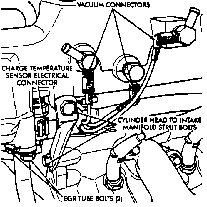 (9) Disconnect Charge Temperature Sensor electrical connector. Remove vacuum harness connectors from Intake Plenum (Fig. 5).