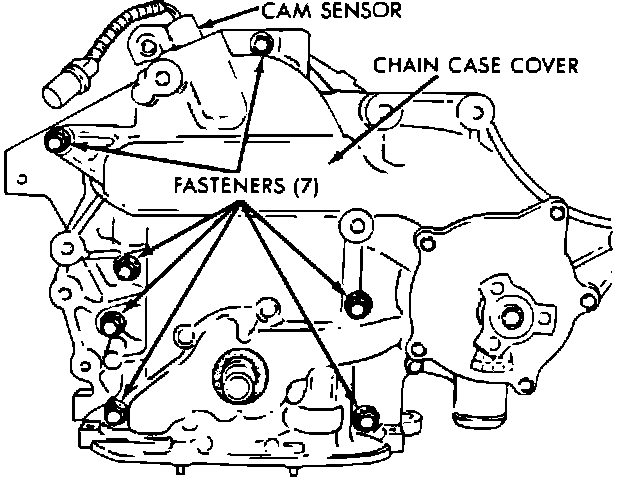 11. Remove cam sensor from chain case cover, then the chain case cover, Fig. 25.