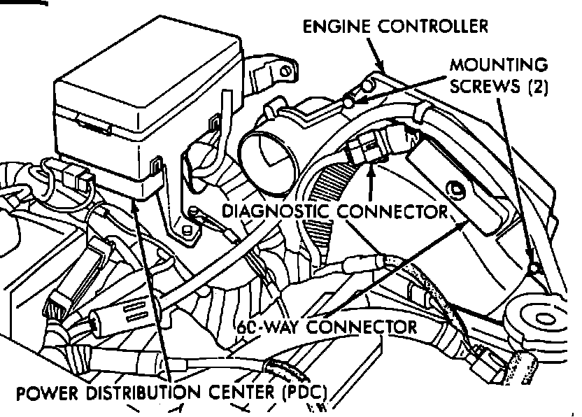 The diagnostic connector is located under the hood, next to the Single Board Engine Controller (SBEC).