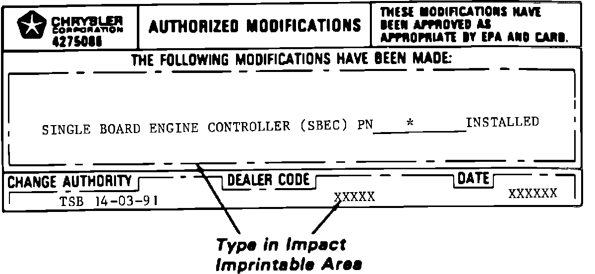 2. Type the required information on the Authorized Modification Label, PN 4275086 as illustrated in Figure 1, and attach the label near the VECI (Vehicle Emissions Control Information) label.