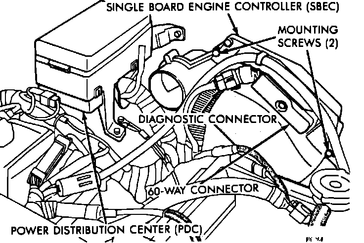 The Power Distribution Center (PDC) is located in the engine compartment on the left-hand inner fender next to the SBEC.