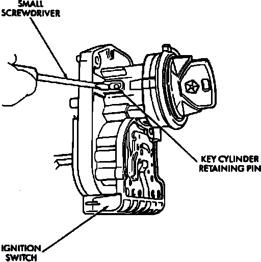 a. With key inserted and switch in Lock position, use a small screwdriver to depress ignition lock retaining pin flush with lock cylinder surface.