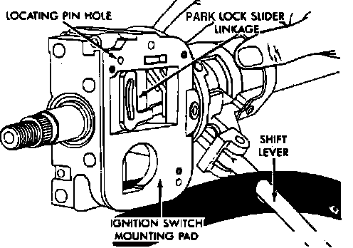 c. On column shift models, shift lever must be in P position and park lock dowel pin on ignition switch assembly must engage with column park lock slider linkage.
