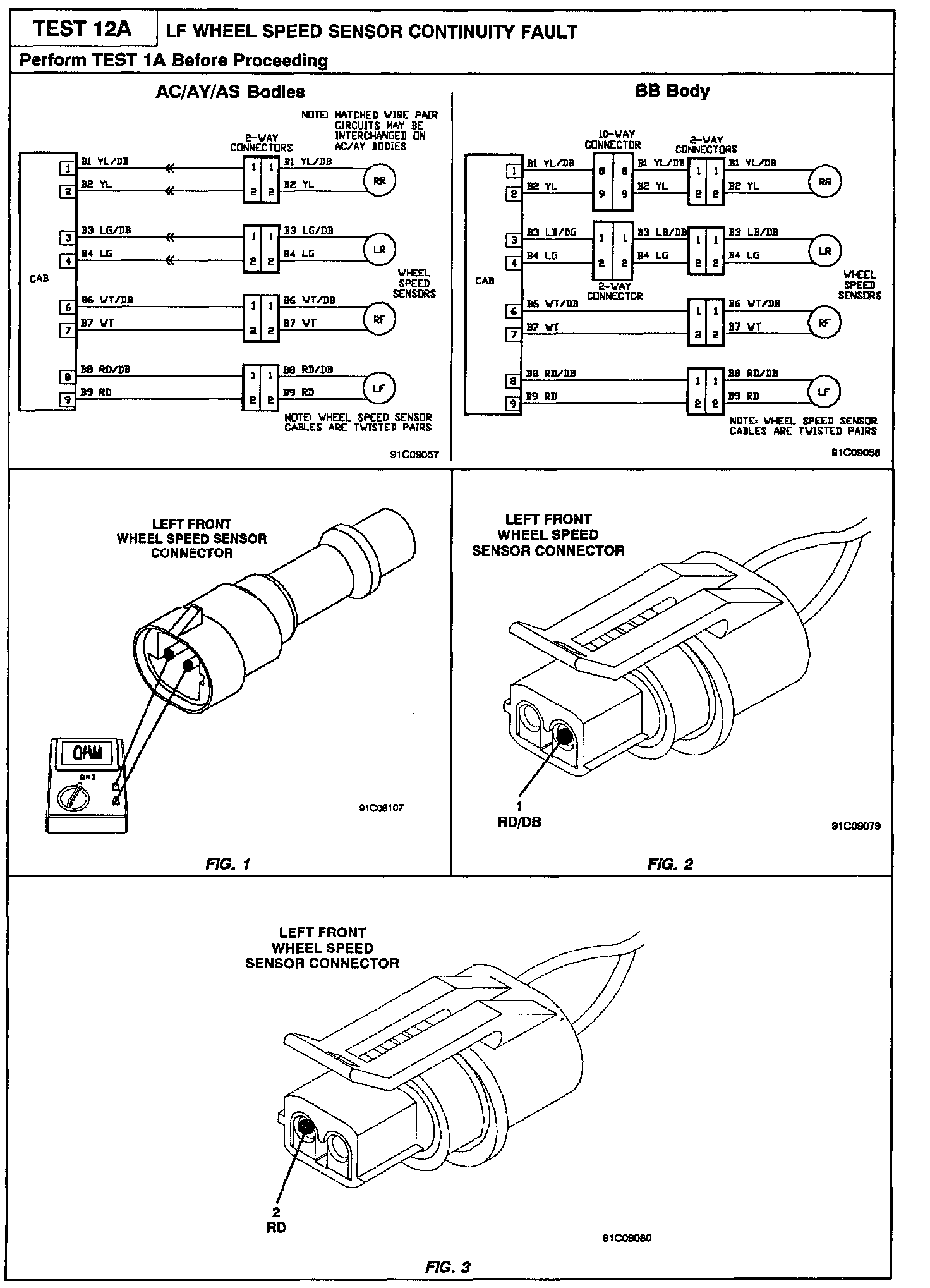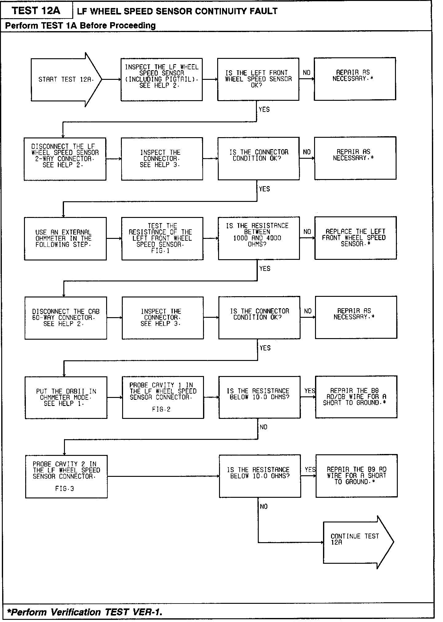 Fig. 98 Test 12A--Left Front Wheel Speed Sensor Continuity Fault (Part 1 Of 2):