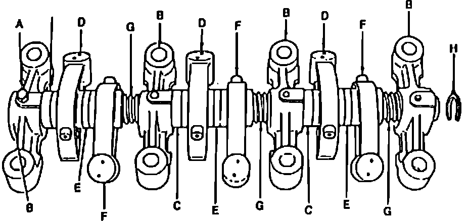 5. Remove spring (G), then the circlip from end of rocker shaft (H).