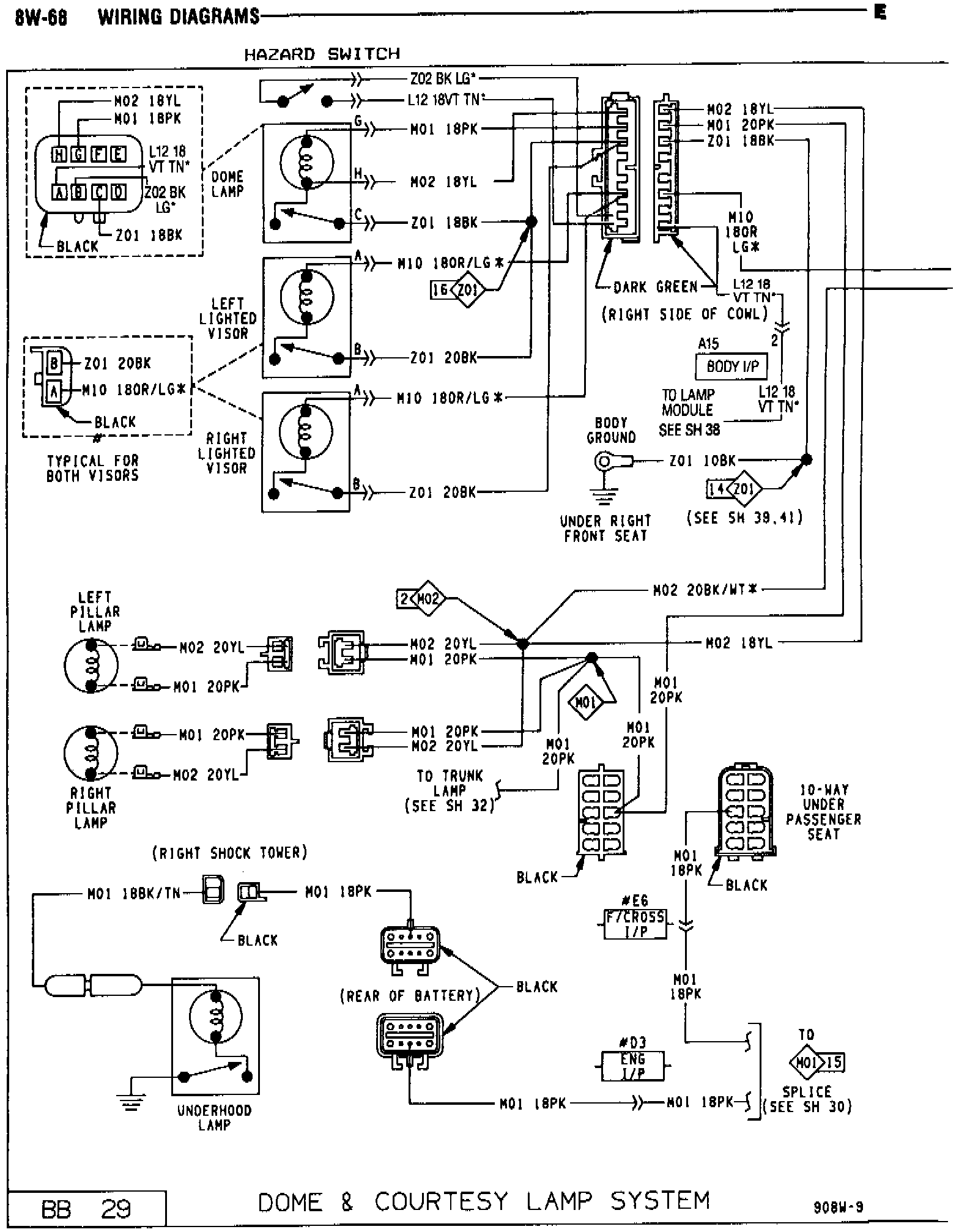 The dome, courtesy and rear end lighting wiring diagrams on 8W-68 and 8W-78 in the 1990 Premier/Monaco Service Manual Publication # 81-270-0140 have been revised.