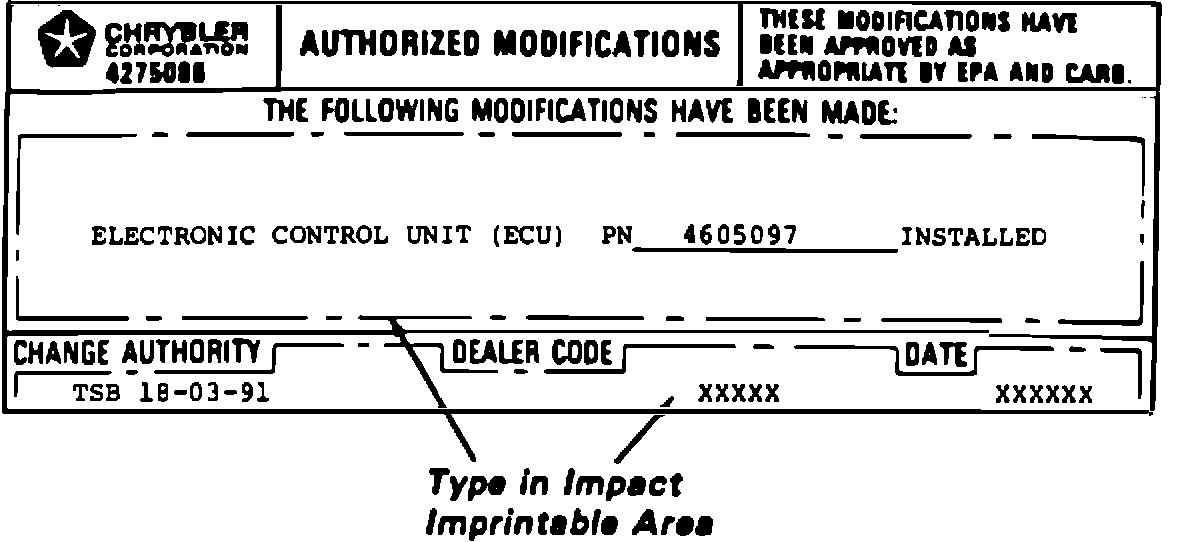 4. Type the required information on the Authorized Modification Label, as illustrated in Figure 1, and attach near the VECI label.