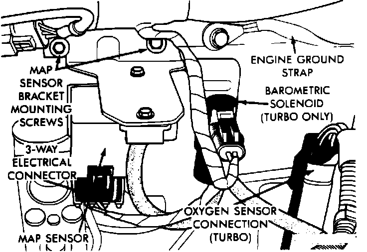 The barometric read solenoid is located on the right hand side of the engine compartment, on the front side of the strut tower. It is mounted next to the Manifold Absolute Pressure (MAP) sensor.