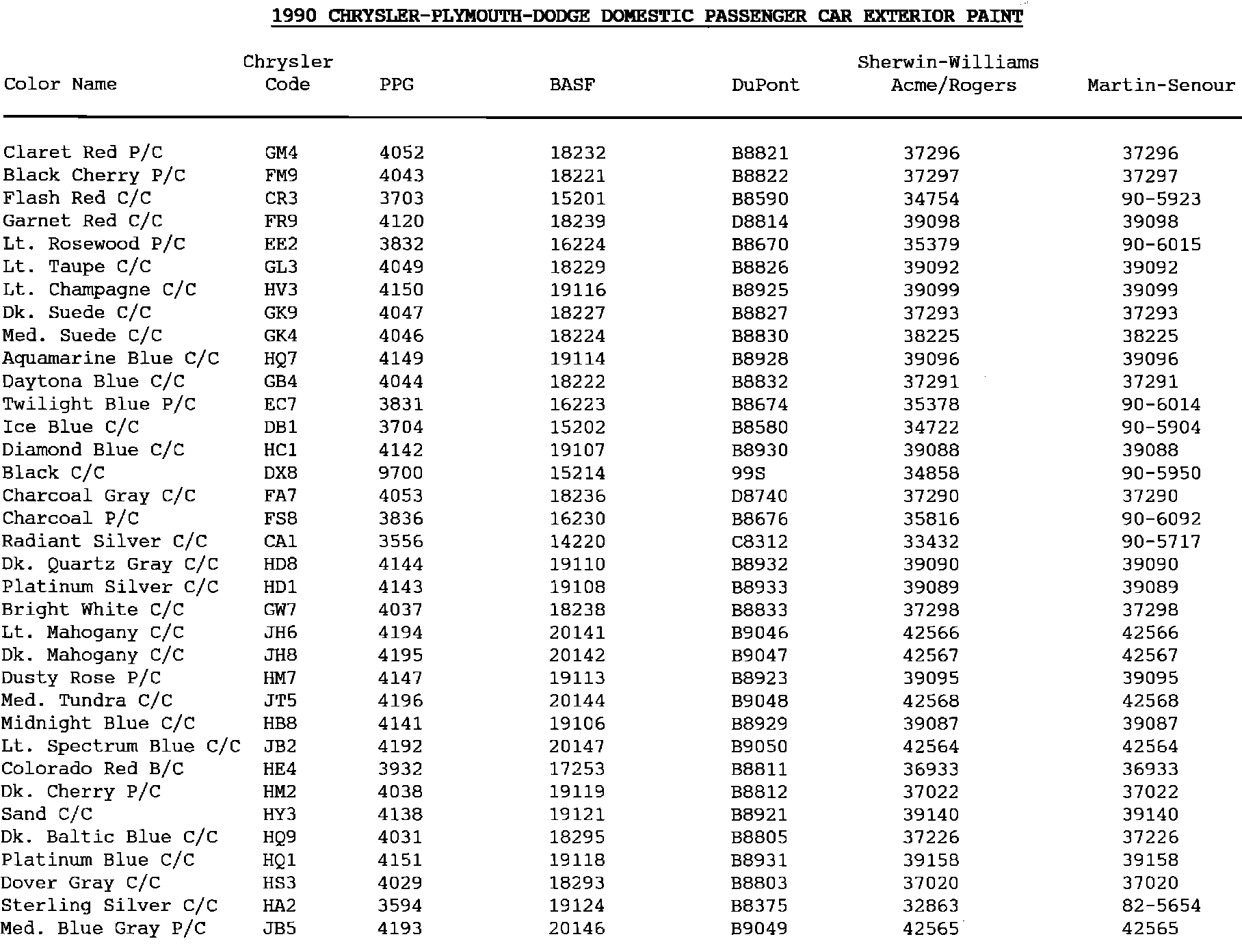 Paint - Codes/Applications/Cross References