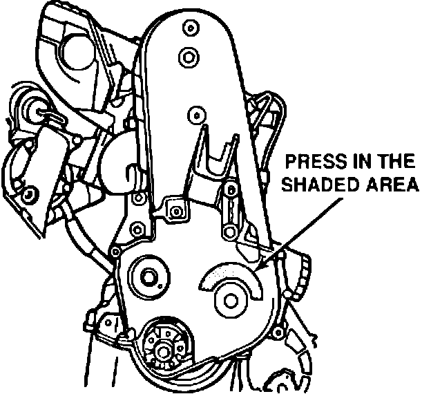 With the engine turned off, check the engine serial number. If the serial number is between XXXXXX0429XX and XXXXXX0838XX press on the lower timing belt cover in the area shown in Figure 1. If the cover does not flex or feels solid, perform the repair procedure.