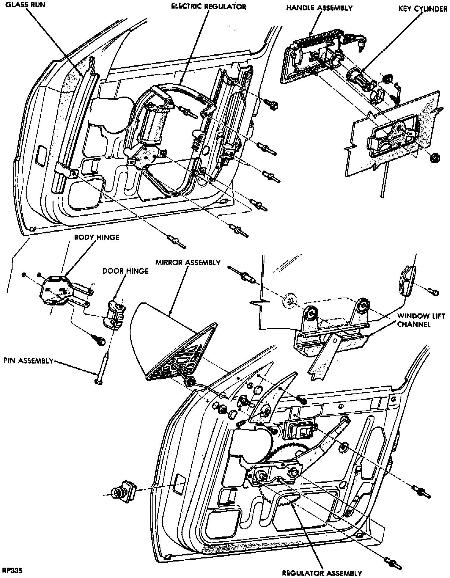 16. Install prepositioned manual or electric regulator to door inner panel.
