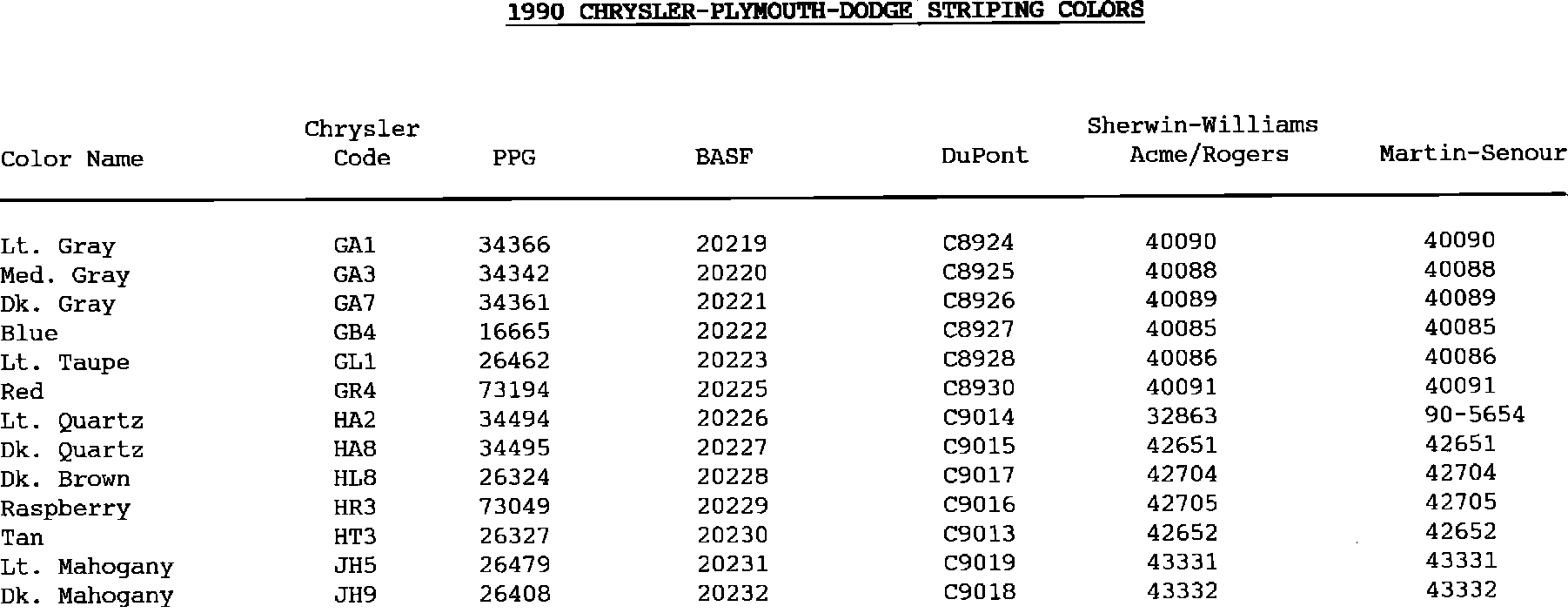 Striping Colors