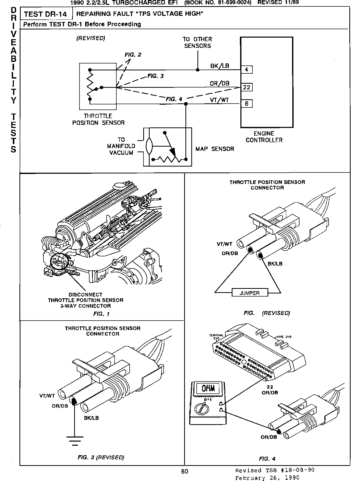 Pages 80 and 81 of the 1990 Powertrain Diagnostic Procedures Manual Publication # 81-699-0024 for the 2.2 and 2.5 liter turbocharged engines have been revised.