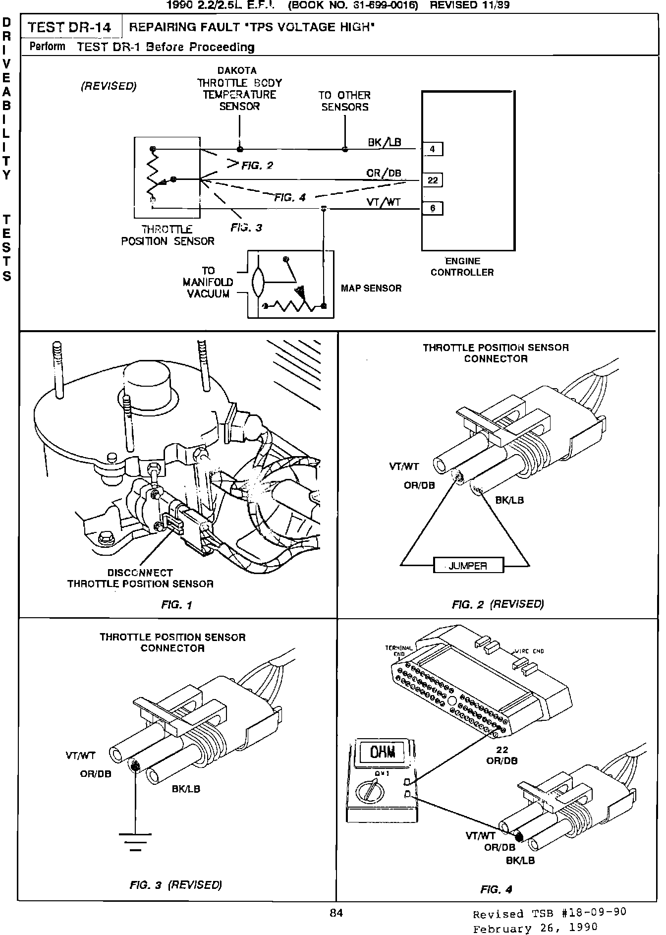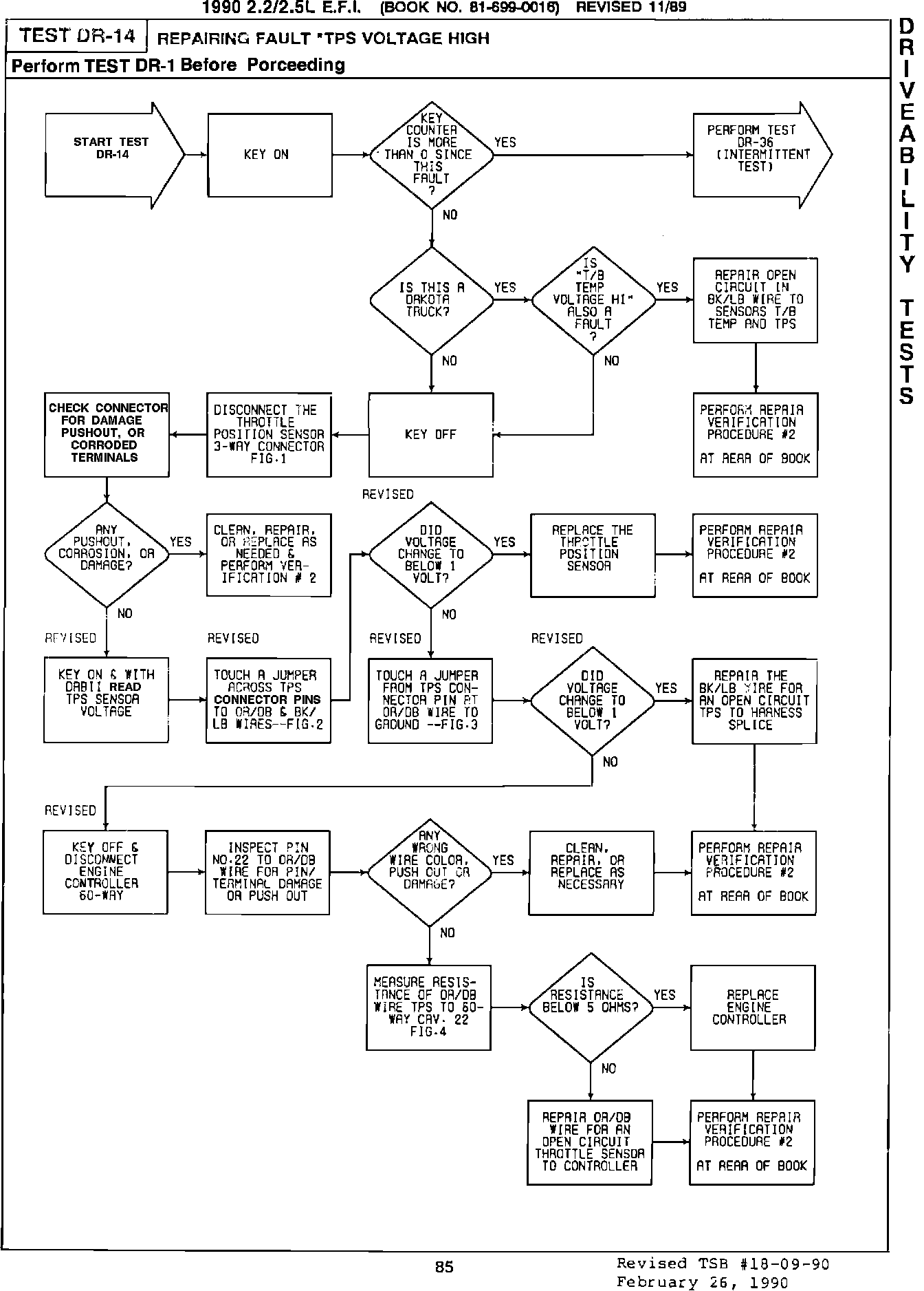 Pages 84 and 85 of the 1990 Powertrain Diagnostic Procedures Manual Publication # 81-699-0016 for the 2.2 and 2.5 liter EFI engines have been revised.