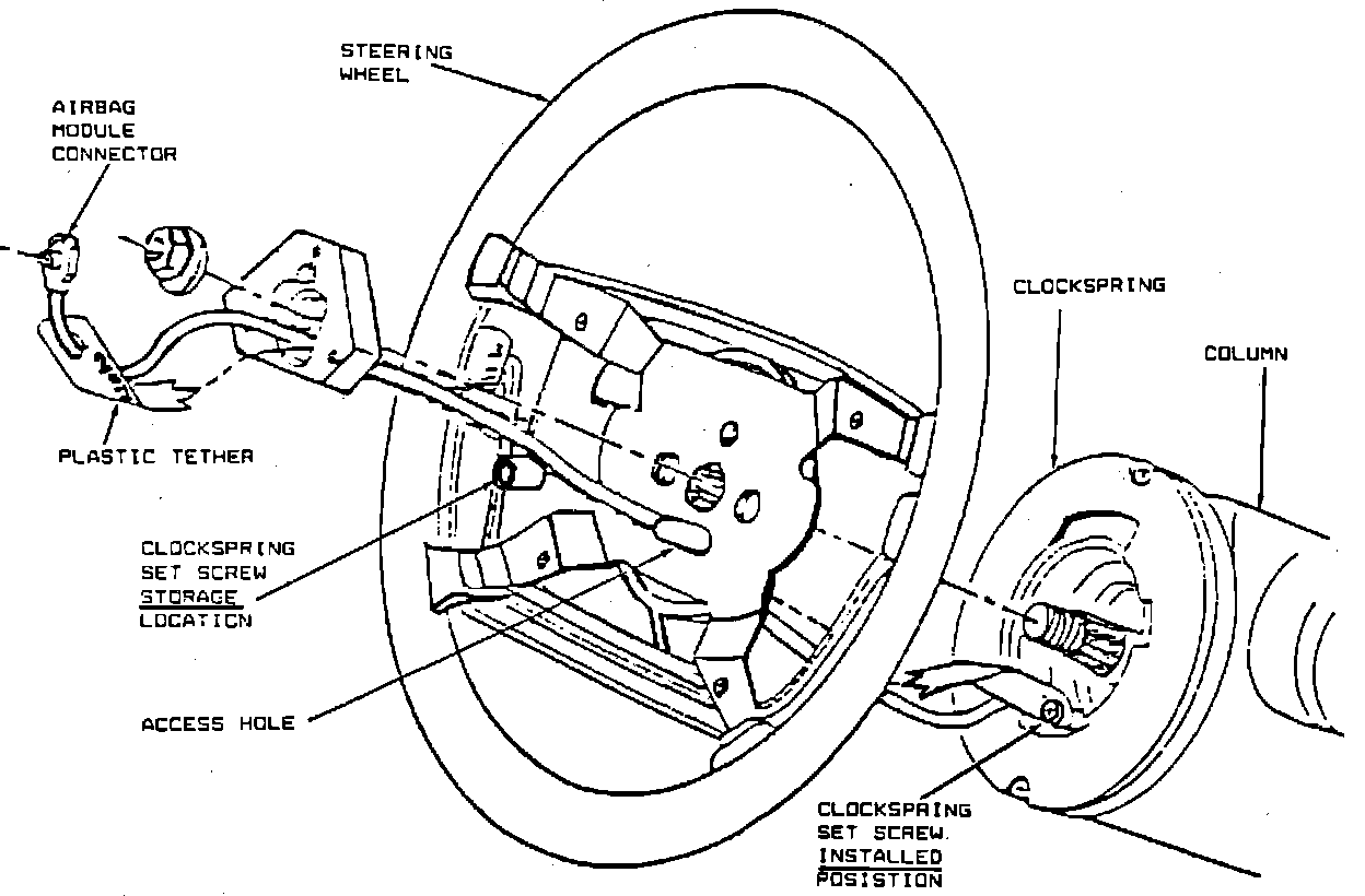 5. On airbag equipped models, remove Clockspring setscrew, attach wiring lead to airbag module and install module in steering wheel. Replace Clockspring setscrew securely in it's storage location