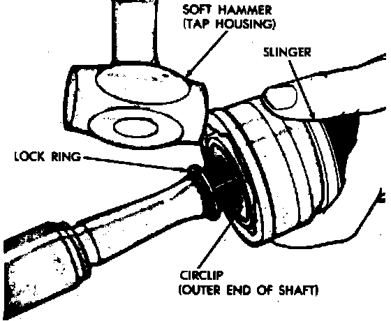 6. On A.C.I. and G.K.N. units, do not remove heavy lock ring from shaft,, unless shaft requires replacement.