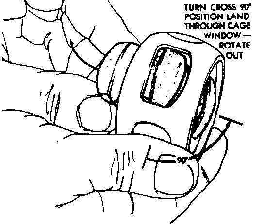 4. Align elongated cage windows with housing land, then pivot cage 90°.