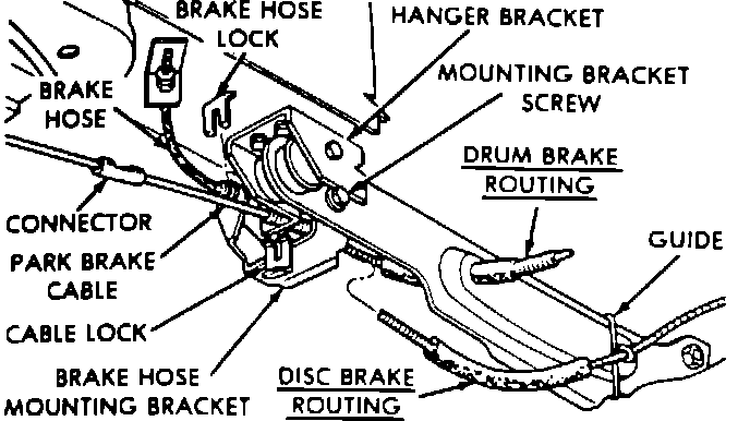 Fig. 1 Parking Brake Cable & Brake Tube Assemblies. Except Horizon & Omni: